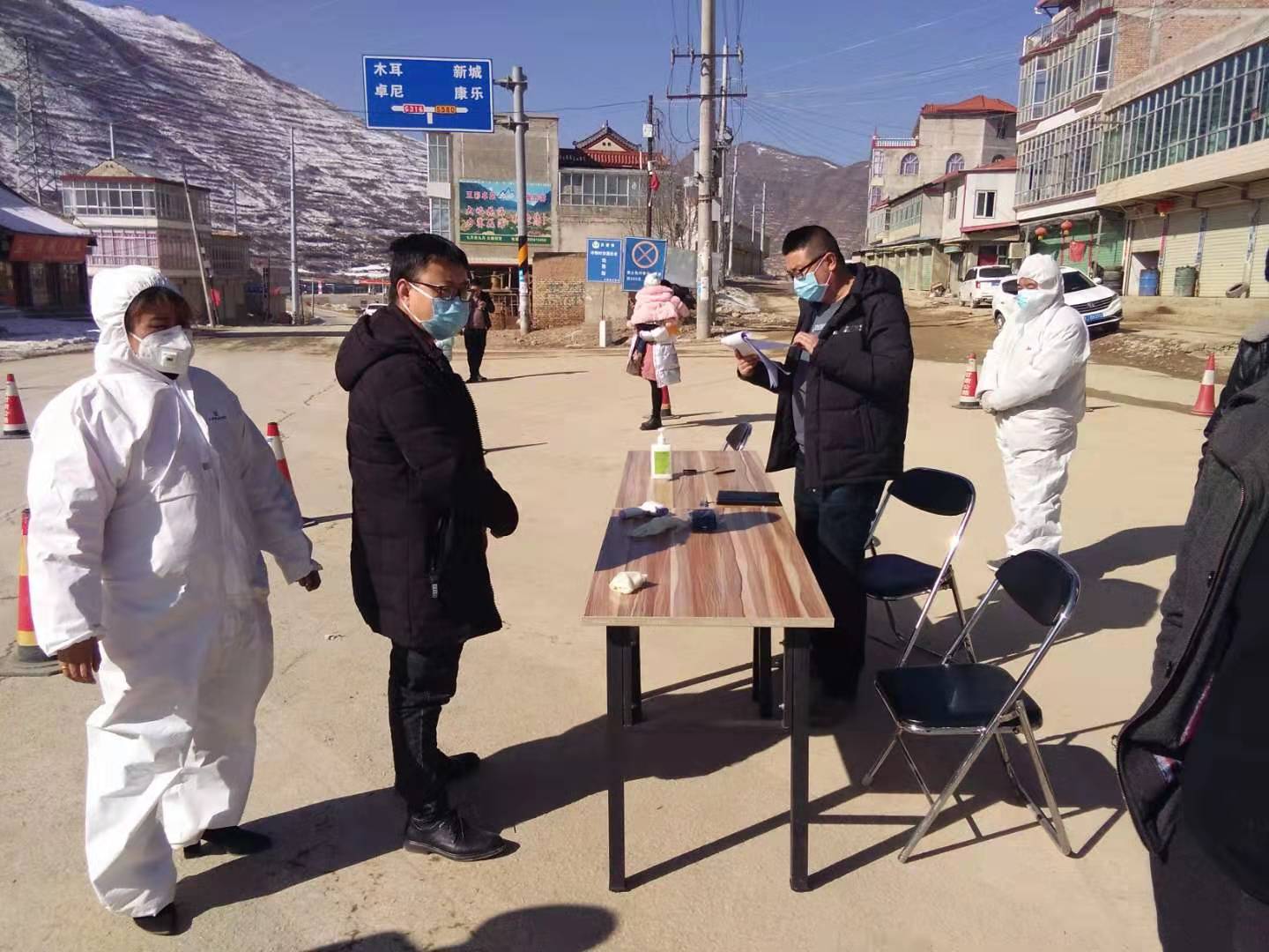 (图为岷县乡镇纪检监察干部在麻子川镇督查各村防控措施落实情况)