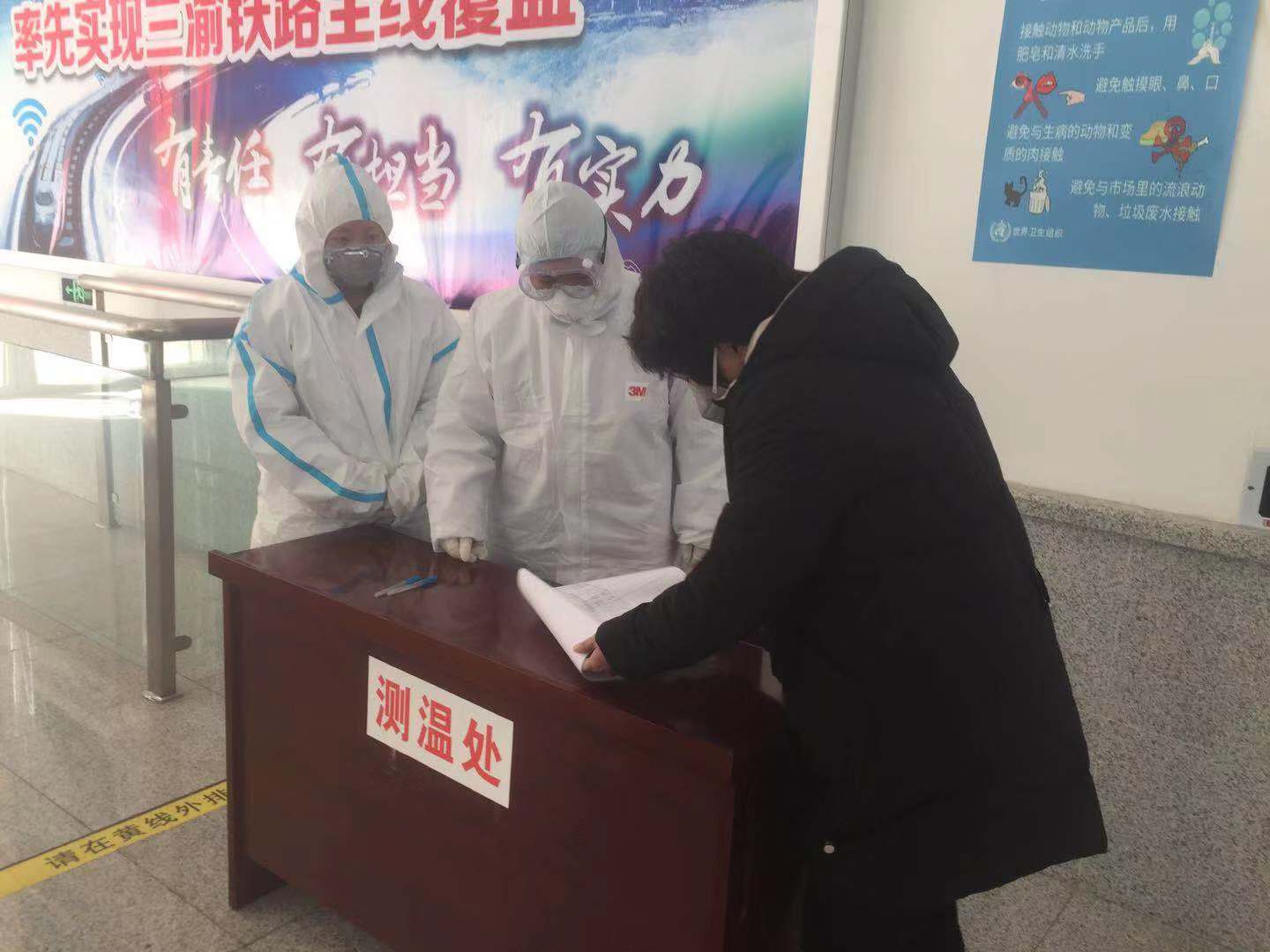漳县纪委副书记、监委副主任汪灵芝到大草滩火车站督查疫情防控措施落实情况。