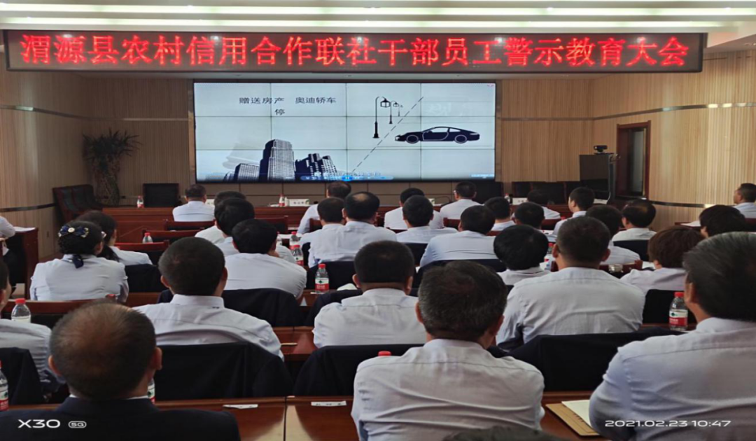 “以铜为镜,可以正衣冠,以人为镜,可以明得失,以法为镜,可以断曲直”。为加强县农村信用合作联社党风廉政建设,有效发挥警示教育震慑作用,进一步强化党员干部职工的纪律意识和廉洁意识。2月23日,县信用联社召开全县农村信用社警示教育大会,本部所有人员、基层网点负责人、主管会计和客户经理共计112人参加会议。