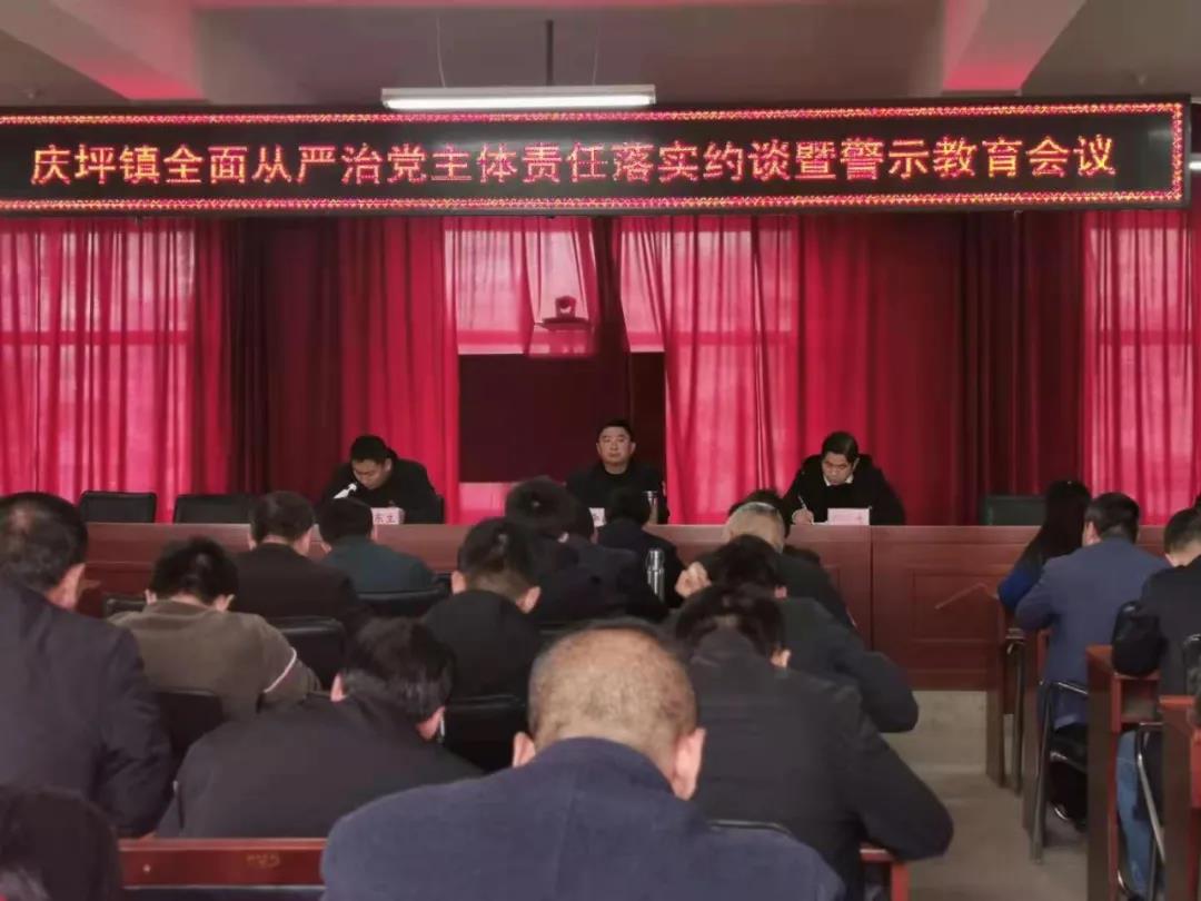 庆坪镇在召开的会议中强调,全面从严治党只有进行时,没有完成时,全镇各级党员干部要率先垂范,切实把从严管党治党的责任扛起来,把开局之年的各项工作任务抓起来,进一步坚定信心、攻坚克难,强化担当、聚焦发力,努力以新作为、新状态、新业绩迎接中国共产党建党100周年。
