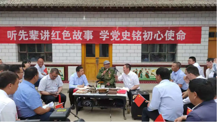 老人精神抖擞,娓娓而谈,胸前挂满的荣誉胸章在烈日下发出耀眼光芒。在座的党员干部仔细聆听着、感悟着老一辈革命同志为革命事业艰苦奋斗、殚精竭虑、不怕牺牲、追求真理的伟大革命精神,红色印记深深的烙在每个人的心中。