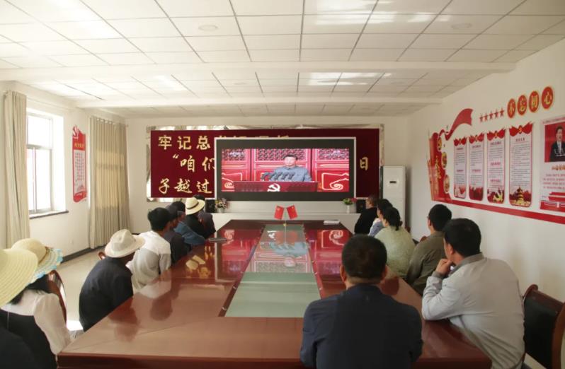 渭源县田家河乡元古堆村村监委主任、村廉政义务监督员和部分群众在村部收看庆祝大会直播。